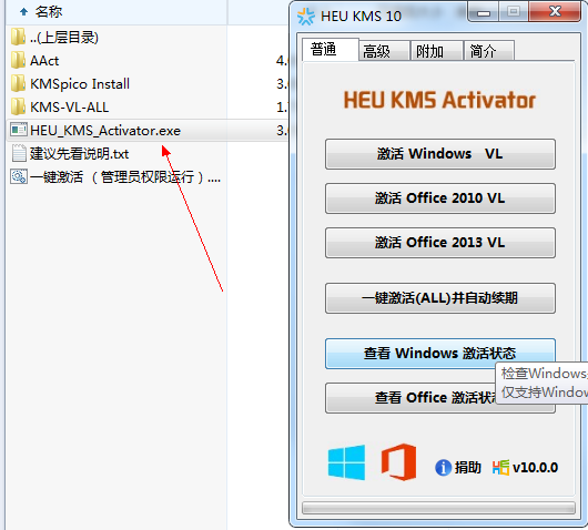 HEU_KMS_Activator又称之为迷你版kms,它是目前网络上最专业、最实用的一款Windows+Office离线激活工具。HEU_KMS_Activator下载功能强大,操作简单,其为单一可执行的方式,使用完毕后对系统无任何残留,可以直接删除,几乎能不联网激活全部版本的Windows和Office,并且支持自动续期。目前heu kms 10是最新版本,可以成功激活Win7、Win8、Win8.1、Server2008、Office 201O/2013、win10的各个版本,并增加了对Windows 10 RTM版的支持,修复了自动续期失败的问题。